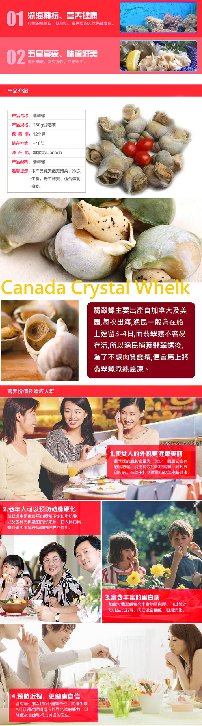 1, from pure Canadian waters: Canada the Atlantic jade snail fish from natural waters winding of the Atlantic coast of Canada cold pure, because Canada jade snail fishing industry based on comprehensive fisheries management system, thus ensuring the fishing and processing jade snail all adopt the ecological way;